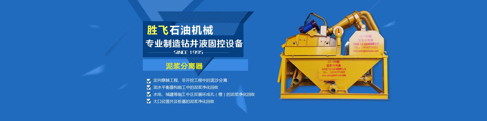河南胜飞石油机械有限公司是一家生产打桩泥浆分离设备和非开挖泥浆净化回收装备及钻井液固控设备的企业。质量可靠,实行三包。十多年来一直致力于泥浆净化处理的研制和开发,产品具有性价比高、核心技术、质量性能可靠、操作维护方便、使用寿命长等优势。具有独立的货物与技术进出口权利,是中铁集团有限公司、中交集团有限公司、交通部大桥局、中国石化、中国石油的供应商;产品销售网络已经覆盖全国高铁工程,地铁工程、桥梁工程、打桩工程,非开挖工程、石油钻井工程。公司产品出口到美国、加拿大、欧盟、俄罗斯、哈萨克斯坦、印度...[详情]