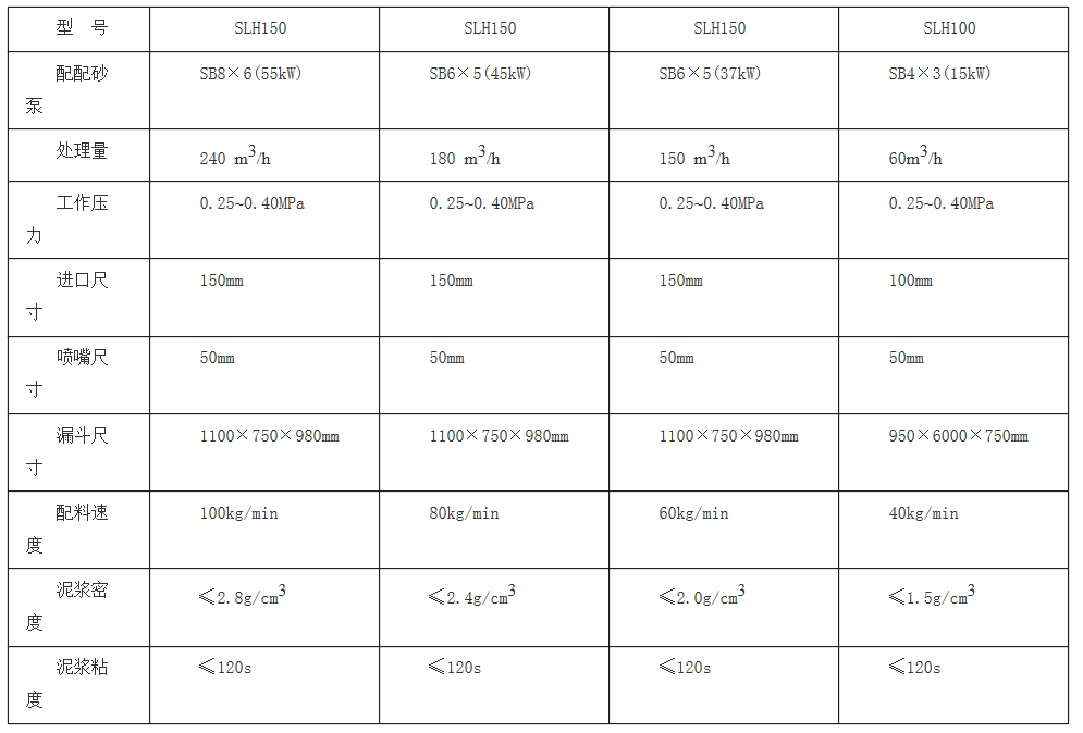 二、射流混浆装置性能参数